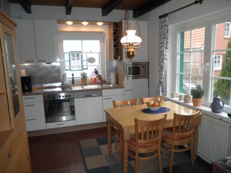 Im Erdgeschoss befindet sich die Einbauküche mit Umluftherd, Ceranfeld, Geschirrspülmaschine, Gefrier,- Külkombination, Mikrowelle, Küchenmaschine, Eierkocher, Toaster und einer reichhaltigen Ausstattung mit Geschirr und Küchenutensilien.