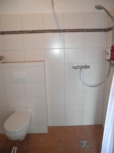 Das Bad mit Dusche und WC liegt im Erdgeschoss.